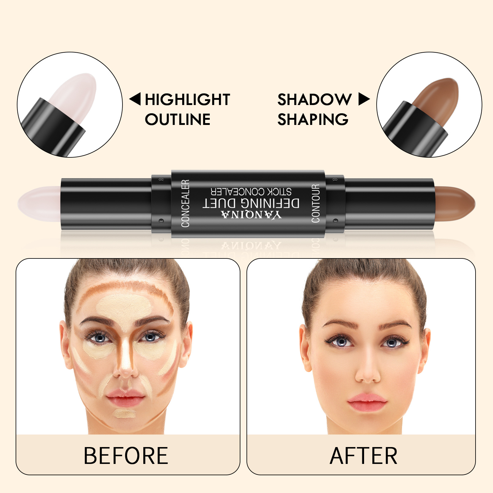 Ditch the complicated makeup routines. Our 2-in-1 Contour & Highlighter Stick is the beginner-friendly secret to a perfectly sculpted face. One end features a creamy contour stick to define your cheekbones and slim your nose. The other end has a glowing highlighter stick to illuminate your features.